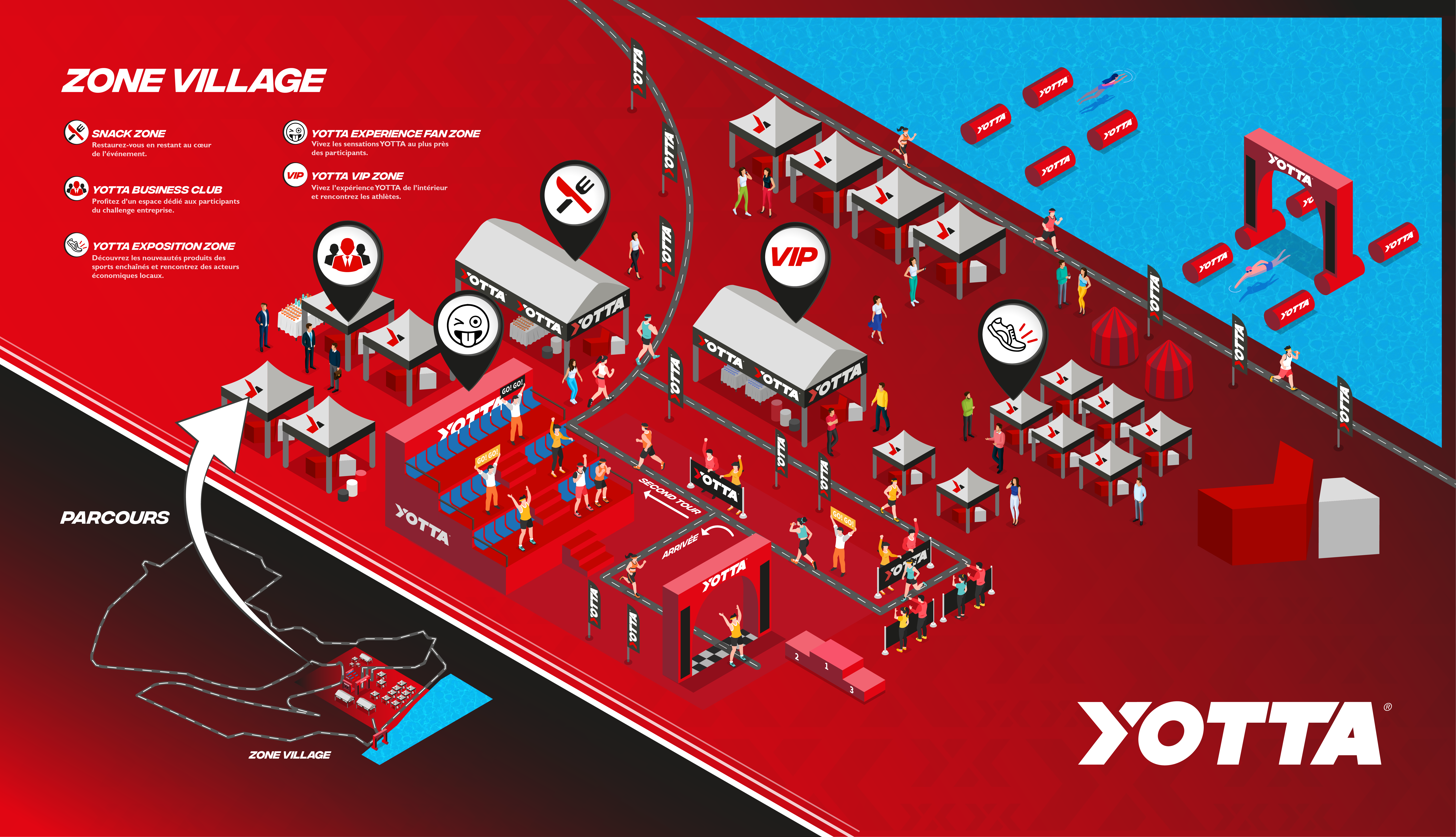 Avec 5 formats de courses existants, ce sont 34 départs et 34 arrivées qui sont célébrés lors des événements YOTTA  soit autant d‘émotions à partager entre les spectateurs et les participants.